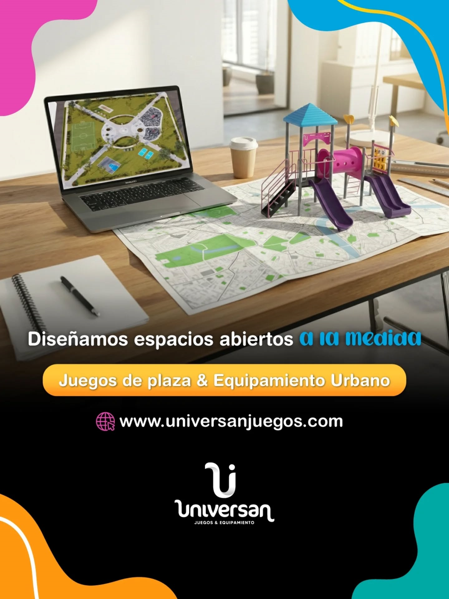 Diseñamos, fabricamos e instalamos juegos de plaza, mobiliario urbano y equipos de gimnasio al aire libre.